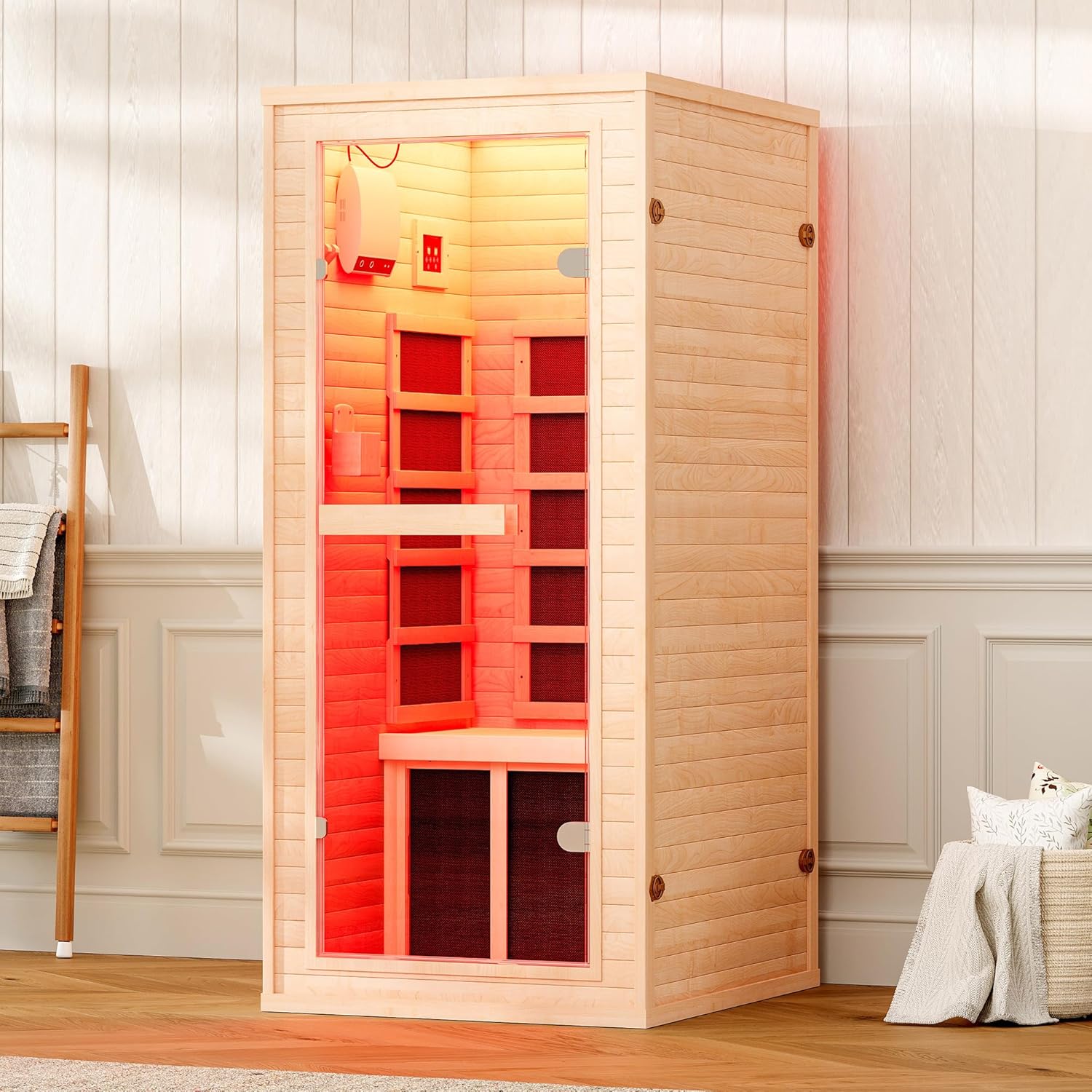 You’ll operate temperature, lights, and other settings with an LCD control panel that’s accessible from inside the cabin. Clear controls help reduce fuss during sessions, and interior controls mean you don’t have to step out to adjust settings.