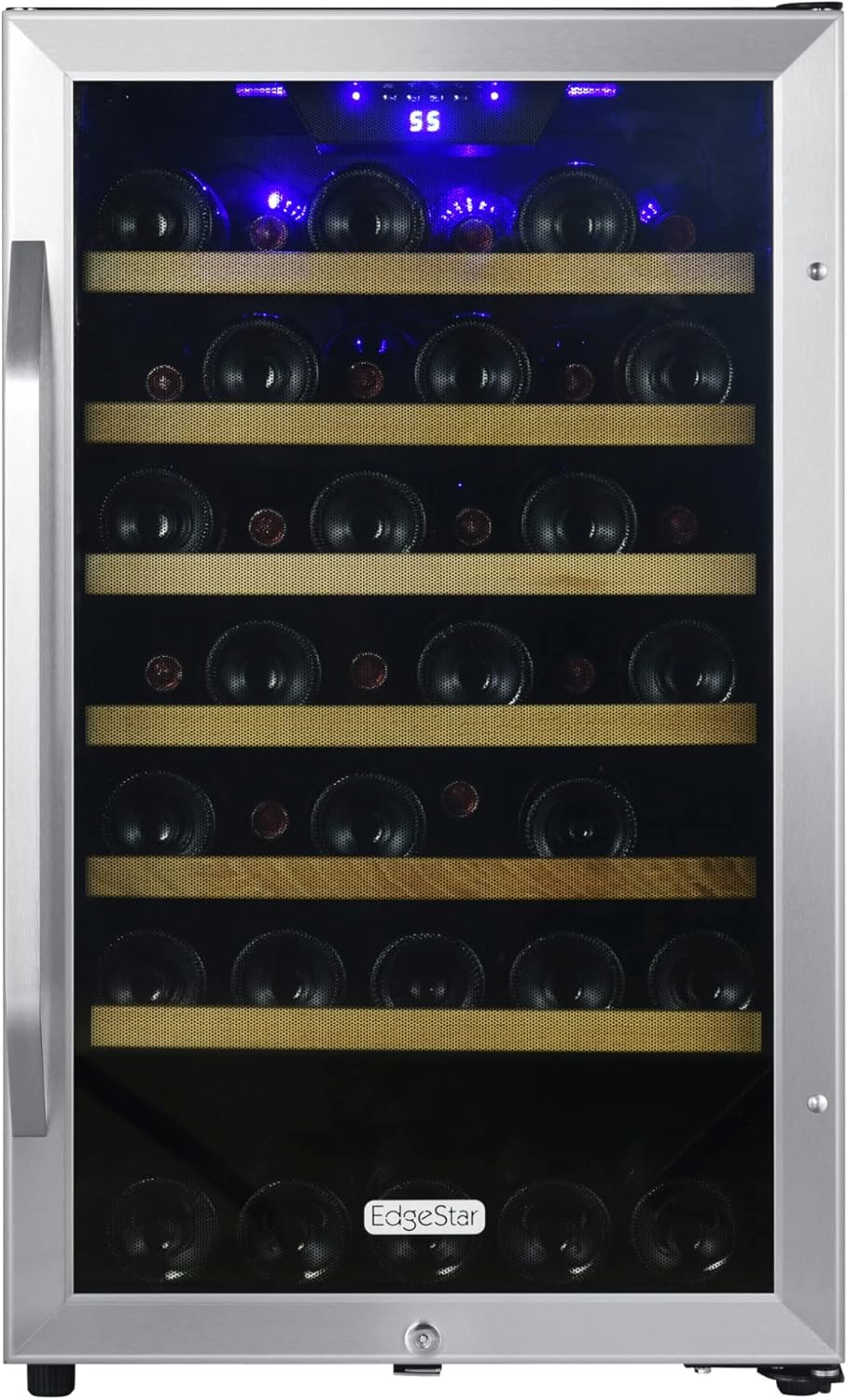 If you want a compact, reliable freestanding wine cooler with a solid 44-bottle-rated capacity for standard Bordeaux bottles, this EdgeStar unit is a strong choice. You’ll benefit from compressor cooling, a wide temperature range, lockable reversible door, and attractive LED lighting. The trade-offs are single-zone control and the need to remove shelves for larger bottles, plus the requirement that the unit remain freestanding.