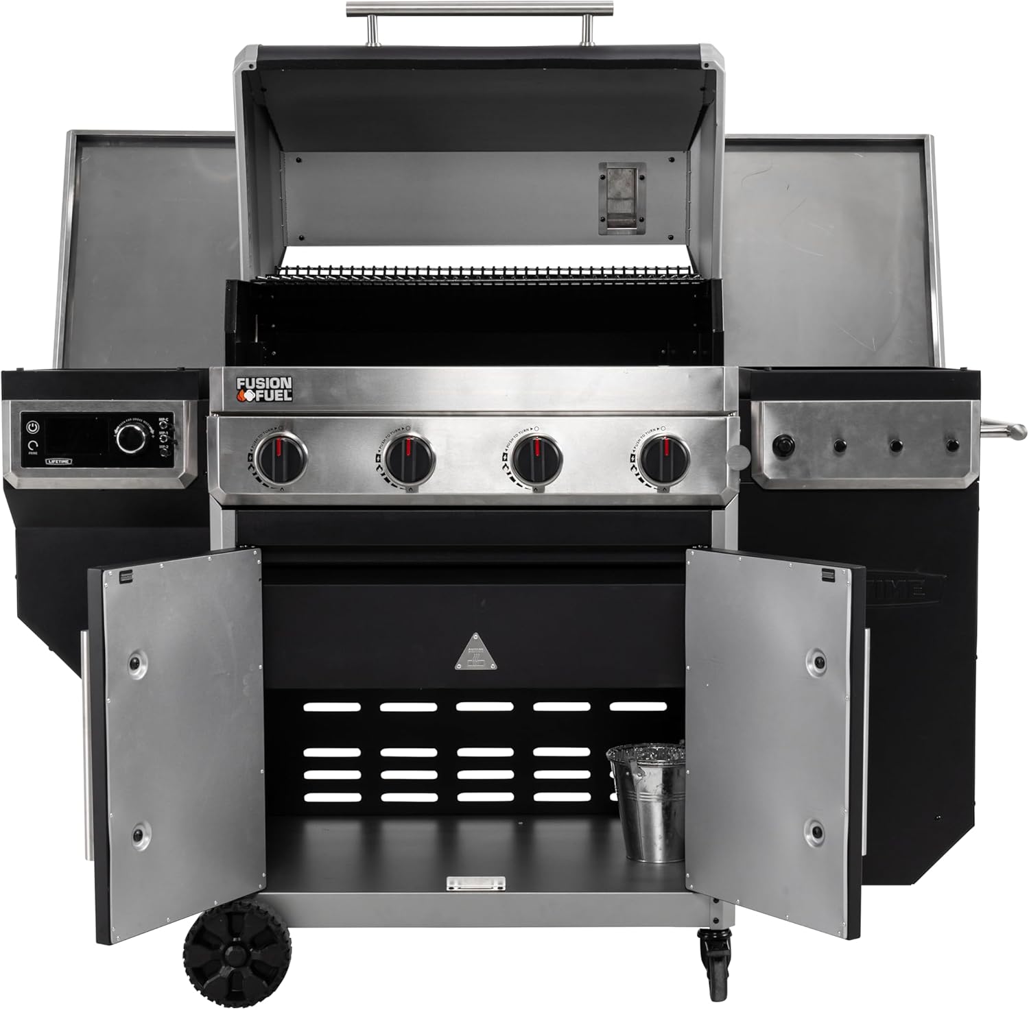 | Fuel system | Fusion Fuel: gas + wood pellets (stacked design) | Lets you grill with gas, smoke with pellets, or combine both for direct + indirect cooking. |